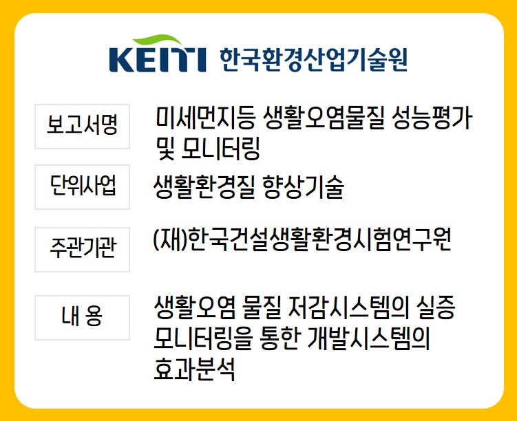 미세먼지등 생활오염물질 성능평가 및 모니터링